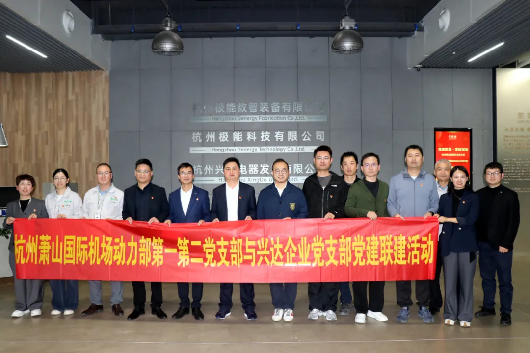 为深入贯彻落实绿色低碳发展理念,深化党建与业务深度融合,以高质量党建引领高质量发展,2025年11月13日,杭州萧山机场动力部第一、第二党支部一行专程到访兴达企业极能园区,与我司党支部开展党建联盟共建活动。