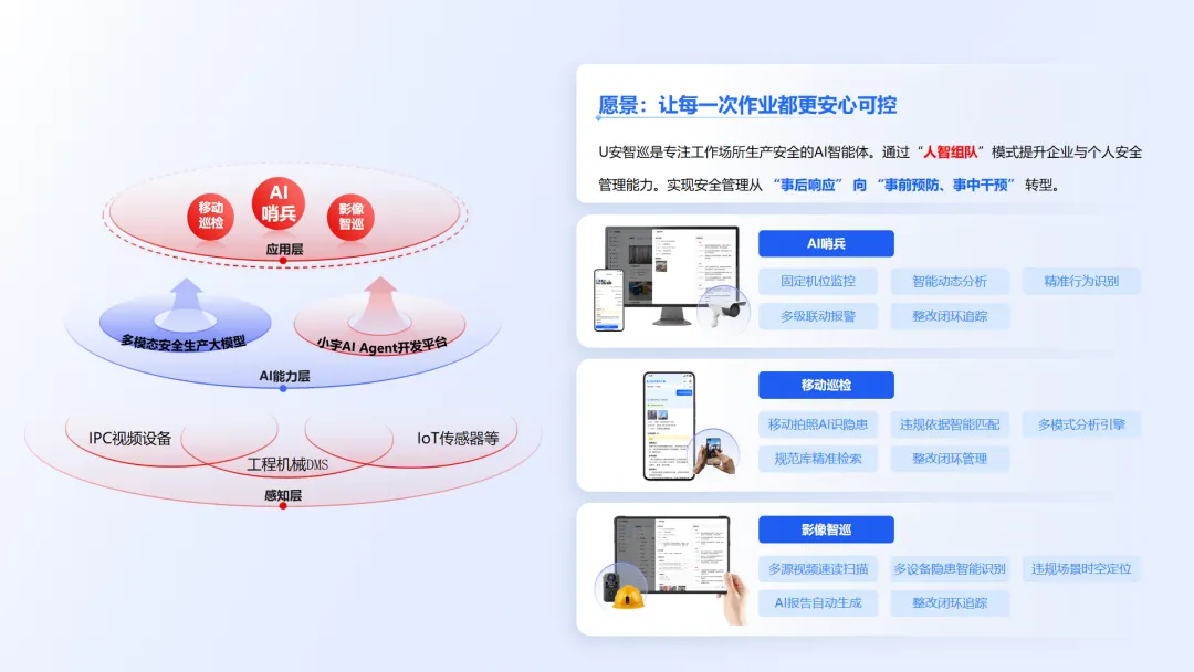 此次入选标志着宇泛智能在高危行业安全生产智能化领域的技术实力与市场影响力得到权威认可。该平台的核心技术支撑,正是基于安全生产大模型基础上构建的U安智巡AI哨兵Agent。