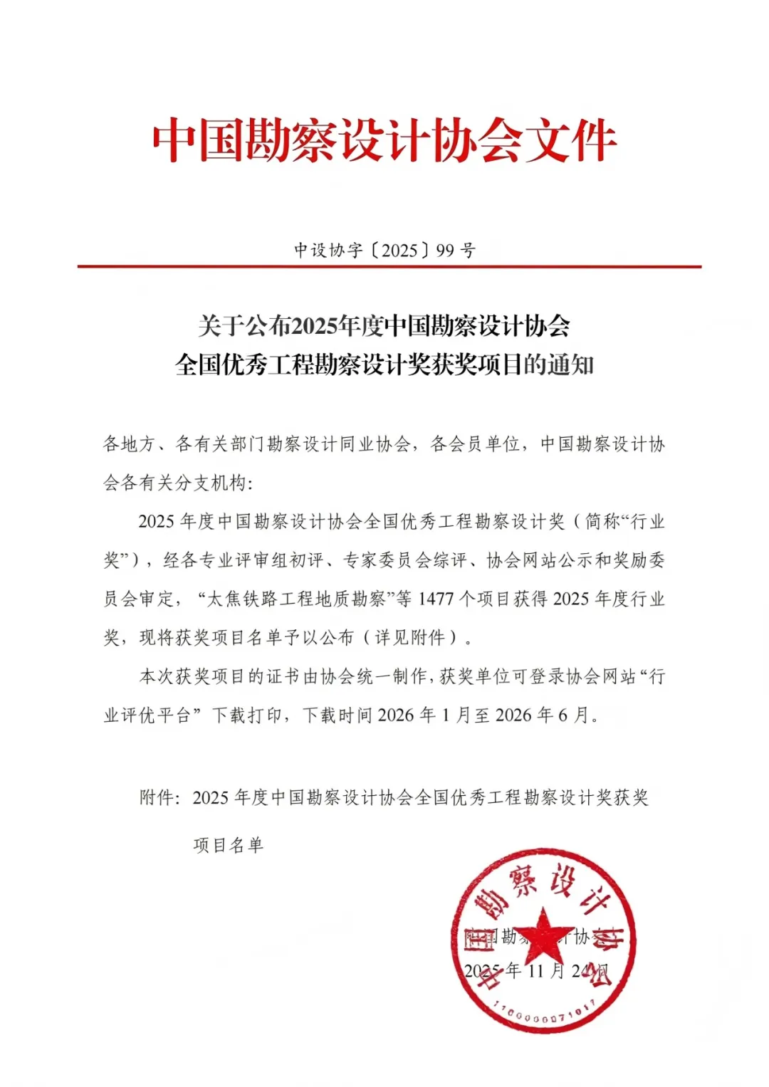 近日,中国勘察设计协会公布了2025年度全国优秀工程勘察设计奖获奖项目名单,安徽长九(神山)灰岩矿项目荣获2025年度全国优秀工程勘察设计奖。