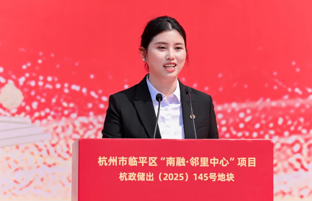 浙江乾承科技股份有限公司总经理张美琳首先向出席仪式的各位领导、嘉宾表示热烈欢迎,向关心支持本项目推进的各界朋友致以诚挚感谢。她表示“杭政储出[2025]145号项目”对她而言是她回馈家乡养育之恩的一份深情答卷,一份连接个人成长与家乡发展的时代见证。